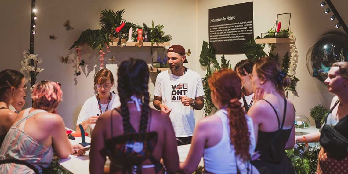 En 45 min de déambulation, le visiteur découvre « tout ce qu’il a toujours voulu savoir sur les sexualités sans jamais oser demander ». Telle est l’ambition de cette exposition de prévention qui titille les sens et stimule l’imagination ! Conçue et réalisée par les équipes de prévention de Solidarité Sida, cette exposition interactive et pédagogique embarque les visiteurs pour une découverte des sexualités sous toutes leurs formes et sans tabou. On y parle plaisir, désir, prises de risques et prévention, en amenant tout un chacun à questionner ses représentations autour de la vie affective et sexuelle. Accompagné par les bénévoles prévention de Solidarité Sida, venez explorer et découvrir « La rue SEXprime » ou encore « Le Jardin des Plaisirs ».