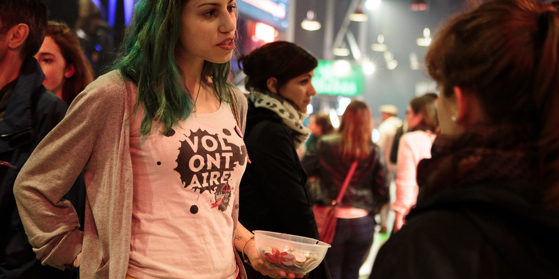 Cela m’arrive très souvent. Depuis la rentrée de septembre, j’en ai fait moins car j’ai eu moins de temps libre avec mes extras, mais j’en ai fait beaucoup en 2014, parce que je n’avais pas de travail à cette époque-là. De mars à octobre, j’ai fait énormément de dates de Rubans Rouges et également pas mal de distributions de flyers Solidays entre mars et juin. Cela fait du bien dans ces périodes de faire autre chose que de la recherche d’emploi. Je découvrais l’asso et je trouvais ça génial de me rendre utile. Comme les attributions de dates sont faites par tirage au sort, je n’étais pas forcément appelée tout le temps, mais comme ils cherchent souvent des personnes pour une salle de concert ou un artiste pas très demandés ou à cause d’un désistement de dernière minute, je me retrouvais au final à en faire trois ou quatre par mois et c’était génial. Je passais mon temps à distribuer des Rubans Rouges et à voir des concerts, c’était cool.