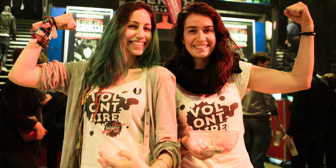 La plupart du temps, oui. Il y a 2-3 salles qui se réservent le droit de nous dire non, parce que ce sont des salles assises, qu’il n’y a plus de places ou tout simplement parce que nous ne payons pas notre place et qu’ils ont le droit de nous dire non. On vient en sachant que la possibilité de ne pas pouvoir assister au concert existe. Pour ce qui est de la distribution de flyers en revanche, on n’a jamais le droit de rentrer dans la salle car l’opération a toujours lieu devant la salle. On ne voit pas le concert, mais on voit le public dehors et c’est tout aussi bien. La plupart des salles sont super accueillantes. Le staff est sympa, la sécu est sympa, les gens sont tellement cools qu’on rentre pour aller voir le concert et parfois même, on se fait des amis et ils nous proposent de revenir sans même passer par Solidarité Sida. Quand cela m’arrive, je trouve cela incroyable tellement c’est humain.