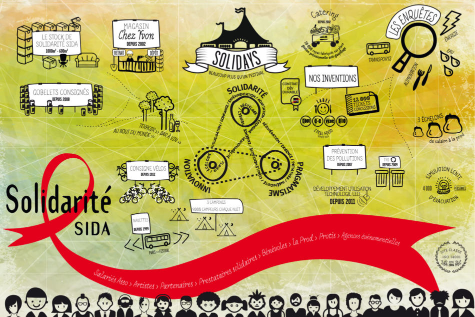 Je suis responsable développement durable du festival depuis 6 ans. Nous communiquons peu sur cet enjeu mais depuis sa création, Solidays est engagé dans le développement durable. Tout simplement parce que l’utilité sociale du festival et l’obligation d’économie et de pragmatisme a induit des réflexes tels que la réutilisation ou l’anti-gaspillage. Mais surtout la finalité de l’association, récolter des fonds, nous a incité à être ingénieux, astucieux et solidaires. En plus, le festival est implanté sur l’hippodrome de Longchamp qui est un site classé ISO 14001 depuis 2006. Cette norme environnementale internationale impose une préservation concrète de l’environnement et des audits annuels. Nos hôtes sont contrôlés régulièrement par l’AFNOR. C’est très sérieux.